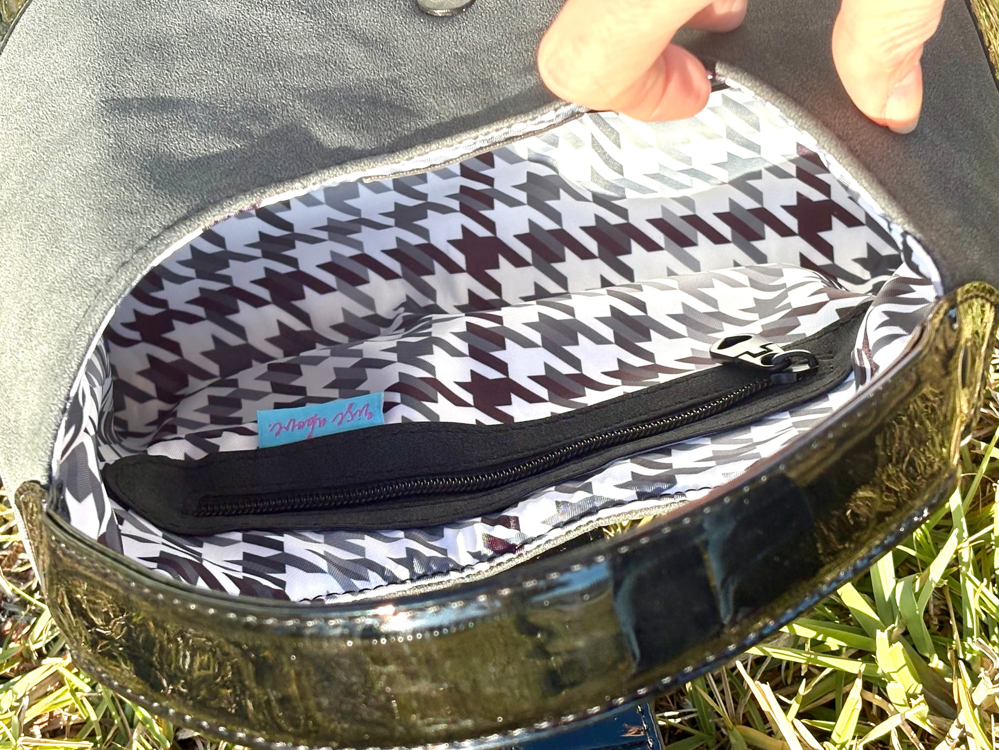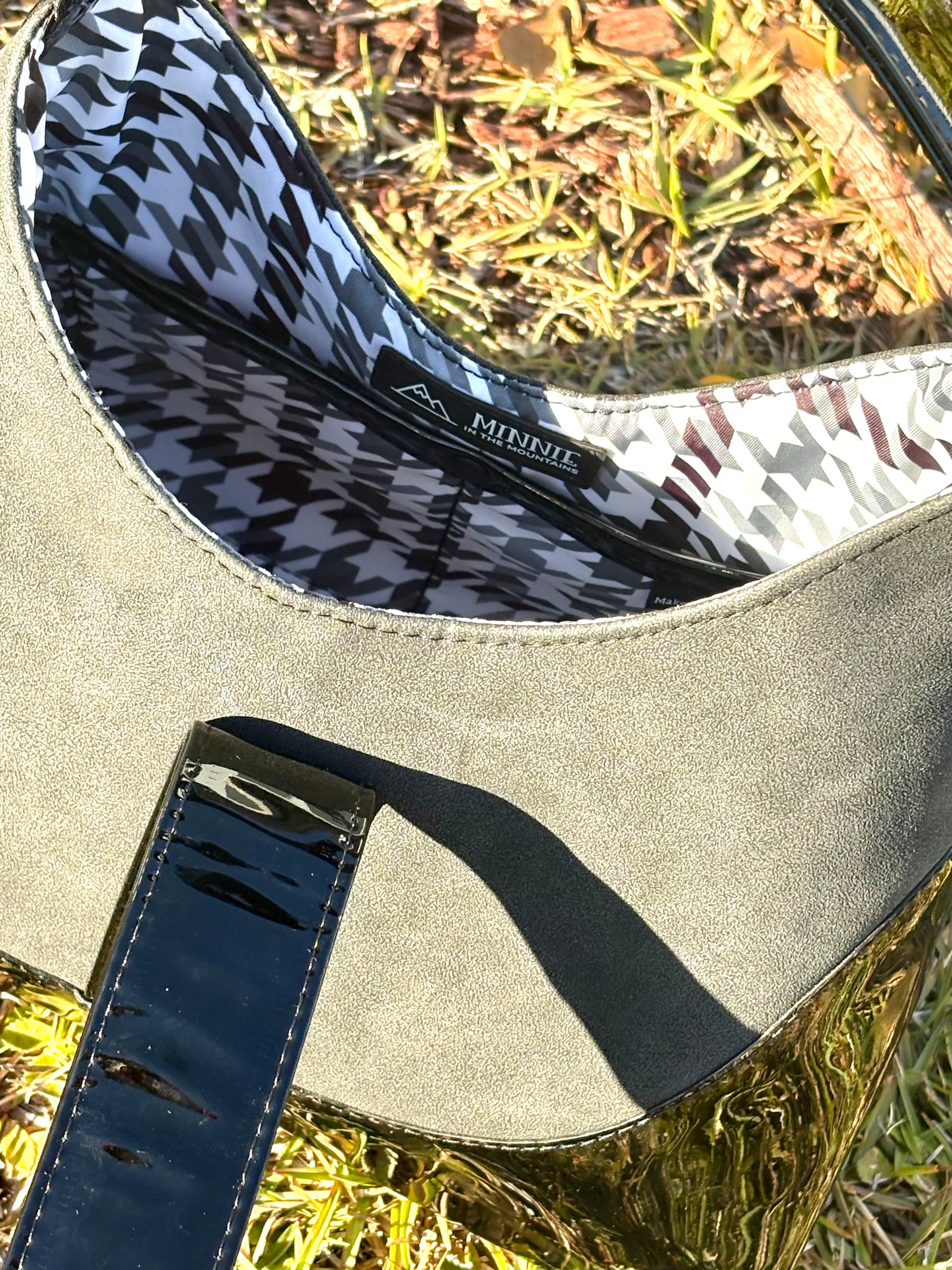 Dang babe, you classy! This monochromatic handbag is the perfect touch to finish your fit and hold all your stuff! A faux suede base coupled with faux patent leather accents and a matte black bow detail on the magnetic closure flap is chef’s kiss! Inside you’ll find a zippered pocket and a divided slip pocket and tons of room for all your essentials. Purse feet adorn the bottom.