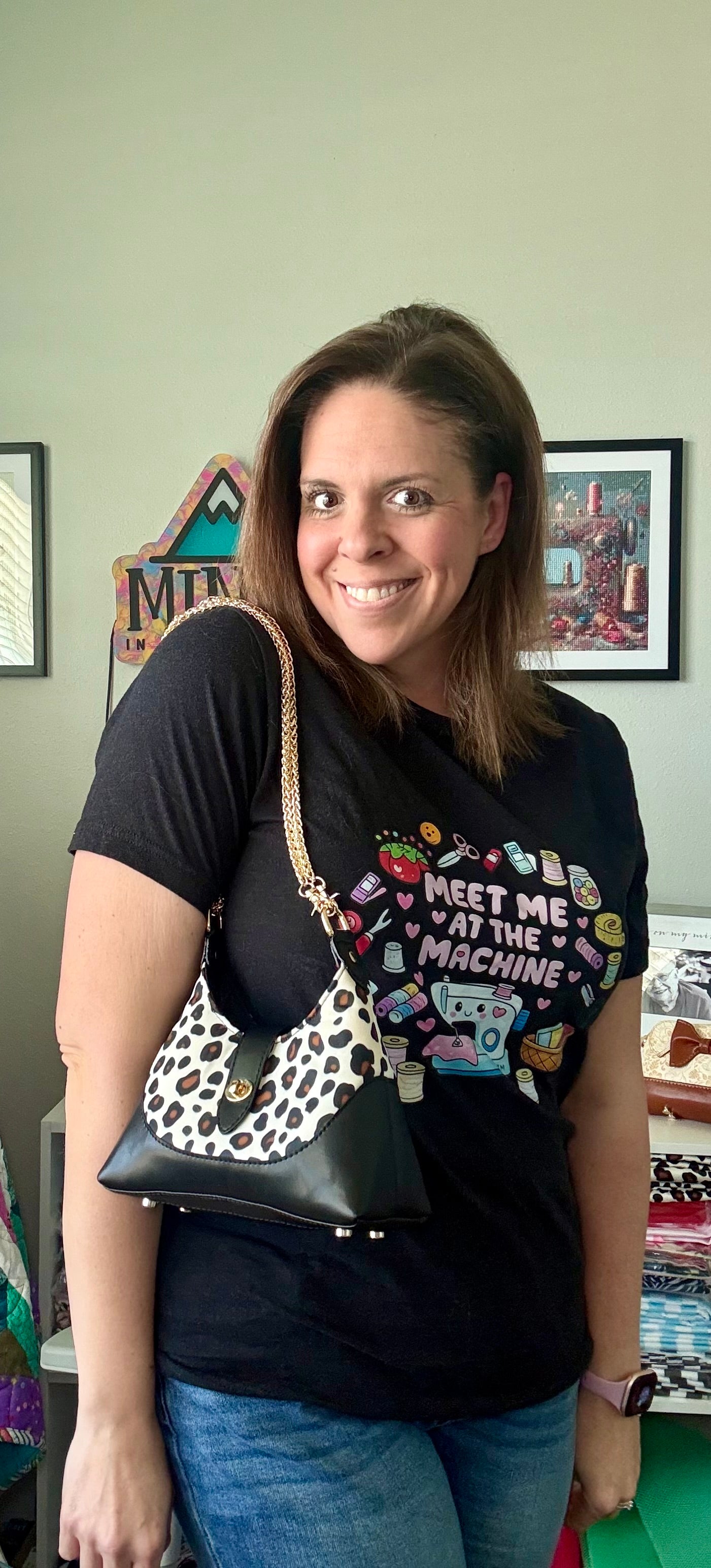 This cutie is ready for a girls night out….or date night (what’s that??)! Small and compact with a slip pocket on the inside, purse feet on the bottom and a twist lock closure flap. Wear it as a crossbody or double the chain up by passing it through both d-rings to wear as a shoulder bag!